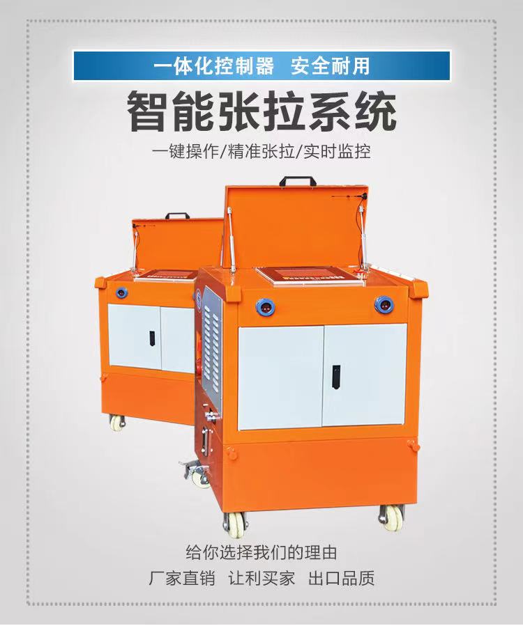应用领域:各大型桥梁、城市轻轨、高层建筑、水利水电大坝、港口码头、立交的主要张拉设备 产品型号:ENGINEER 中亚一拖四智能系列 适用温度:-20°C至50°C 电机功率:4Kw 设备尺寸:108*75*128cm 张拉行程:200mm 厂家定制:可加工定制